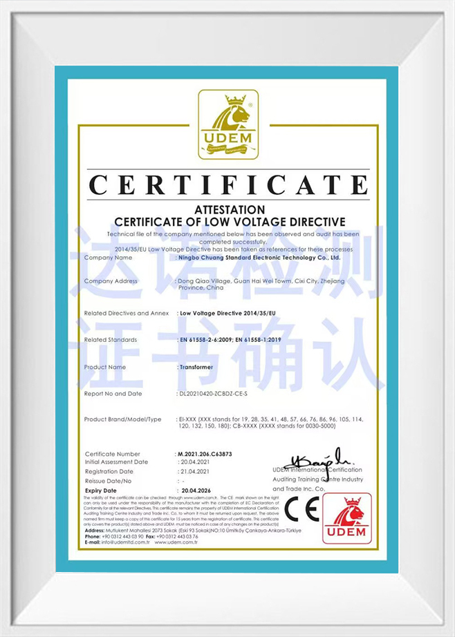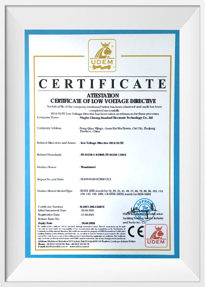 Ammattilaisena Custom Transformer Manufacturers ja Transformer Exporter, Tällä hetkellä yritys on muodostanut ominaisuuden EI-muuntajan ja tuottaa kaikenlaisia rengasmuuntajia, C-voimanmuuntajia, lääketieteellisiä muuntajia, äänimuuntajia, korkeajännitemuuntajia, teollisuusohjausmuuntajia, anti-Shock, Reactors, korkeataajuusmuuntajia ja muita tuotteita. Yhtiöllä on täydellinen organisaatiorakenne, joka tarjoaa koko prosessin suunnittelusta, hankinta-, valmistuksesta, laadunvarmistuksesta, logistiikasta, myynnistä ja asiakaspalvelusta. Valitsemme materiaaleja hyväksytyiltä korkealaatuisilta toimittajilta ISO9001 -standardien mukaisesti, työntekijät ovat erityisesti koulutettuja ja käyttävät nykypäivän edistyneintä tekniikkaa, mukaan lukien CNC -koneet ja automatisoidut testausjärjestelmät, ja jokainen valmistama muuntaja kulkee kattava laatutarkastus ja testaus ennen tehtaan poistumista. Meillä on vahva tekninen kehitysryhmä, jäsenillä on yli seitsemän vuoden tuotekehitys ja tuotanto- ja laadunvarmistuskokemus, teollisuudessa on tietty maine ja vaikutusvalta, olemme sitoutuneet tarjoamaan asiakkaille laajimmat palvelut, mukaan lukien kattavat tekniset neuvot. Yhtiö on läpäissyt ISO9001 -laatujärjestelmän sertifikaatin, CQC -tuotteiden laadun sertifikaatin, ROHS: n ympäristönsuojelutodistuksen jne. Alan on tunnustanut yrityksen eheys, vahvuus ja tuotteen laatu. Ningbo Chuangbiao Electronic Technology sijaitsee Zhejiang Hangzhou Bay Bridge -sivustolla, tervetuloa ystäviä kaikilta elämänaloilta käydä, ohjaus- ja yritysneuvotteluissa.